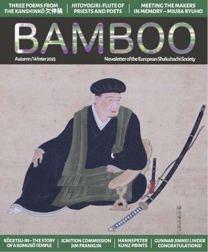 From Japan we welcome Tani Yasunori, iemoto daihyo (representing the iemoto) dai-shihan of Ueda-ryū, who will present Ueda-ryū honkyoku and sankyoku, from Australia Riley Lee will be teaching Chtkuho-ryū honkyoku and contemporary pieces, Gunnar Jinmei Linder from Chikumeisha will teach sōkyoku and honkyoku, Hélène Seiyu Codjo will present Hijiri-Kai pieces and own compositions, Kiku Day will present Zensabo and Myoan honkyoku, Emmanuelle Rouaud will teach KSK honkyoku, shinkyoku and moving image improvisation session with Thorsten Knaub who will also present jiari-shakuhachi making and a shakuhachi clinic, and our special guest for koto/shamisen accompaniment and teaching will be Naoko Kikuchi.